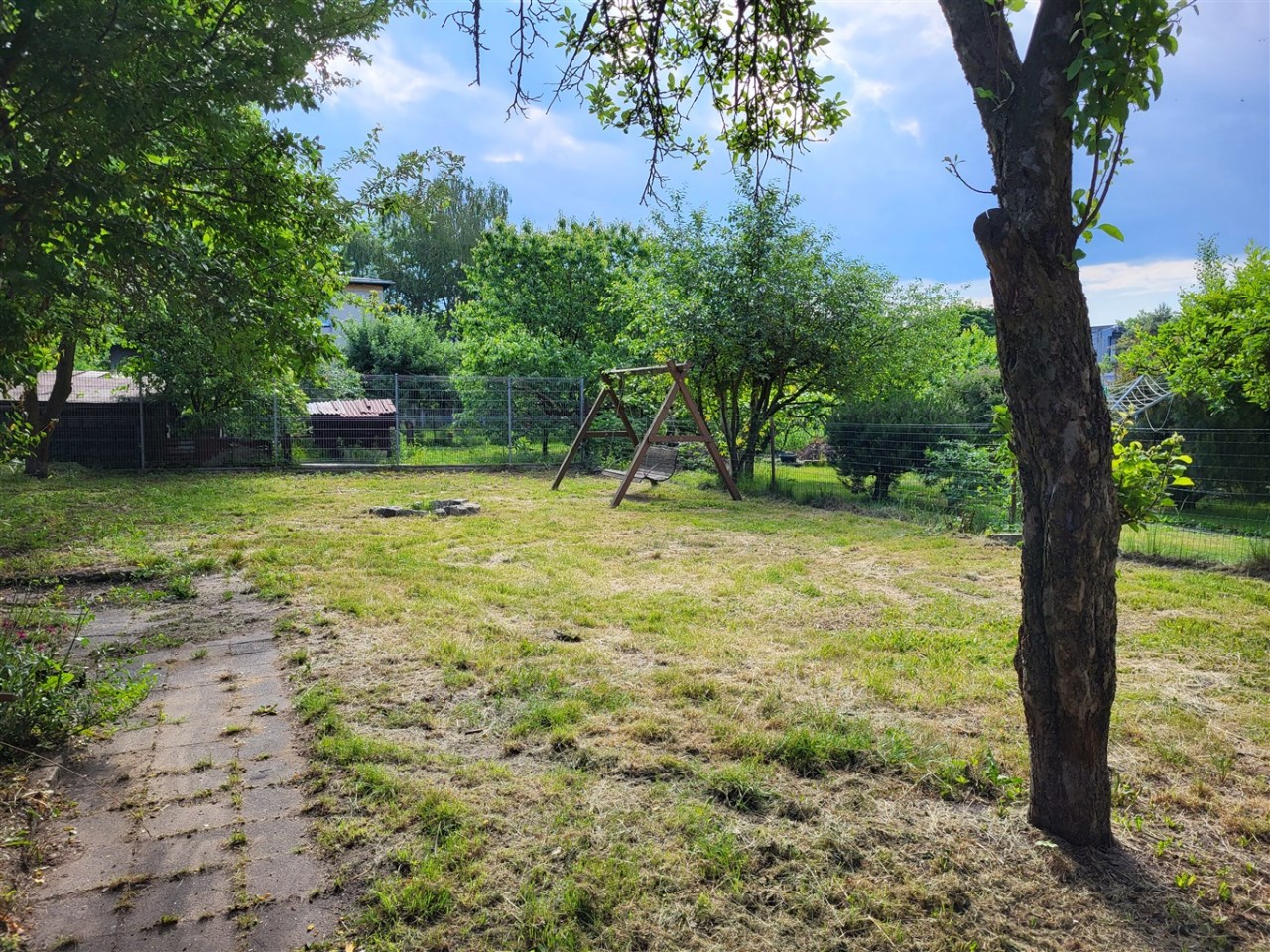 Teren nieruchomości ogrodzony, zagospodarowany zielenią oraz obsadzony drzewami owocowymi.